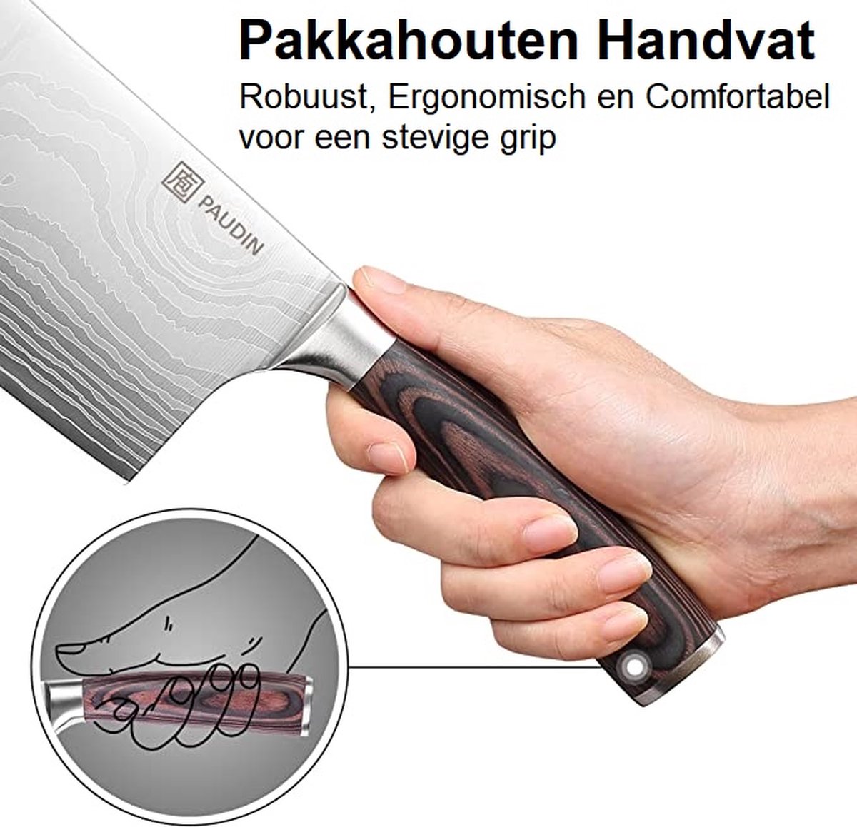 Zoek je een betrouwbaar, scherp en gebalanceerd werkmes voor dagelijks koken, dan biedt het PAUDIN N11 Chinees koksmes veel waarde: een fijne snede, een breed en nuttig lemmet, een comfortabel pakkahout handvat en een handige mesbeschermer. Houd het uit de vaatwasser, droog het direct na de handwas en vermijd bevroren producten of botten—dan heb je er lang plezier van. Als dit aansluit bij je kookstijl, is dit een doordachte keuze om je mesuitrusting mee te versterken.