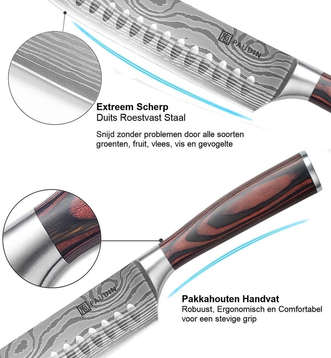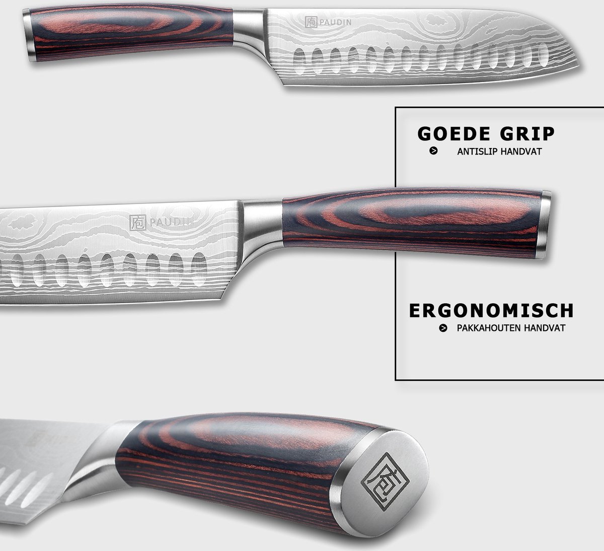 PAUDIN profileert zich als merk van toegankelijke, goed presterende keukenmessen. In deze klasse biedt het merk vaak een scherpe prijs-kwaliteitverhouding met nette afwerking. Het N5 santokumes past in die lijn: gericht op praktisch gebruik, onderhoudsgemak en aantrekkelijke looks.