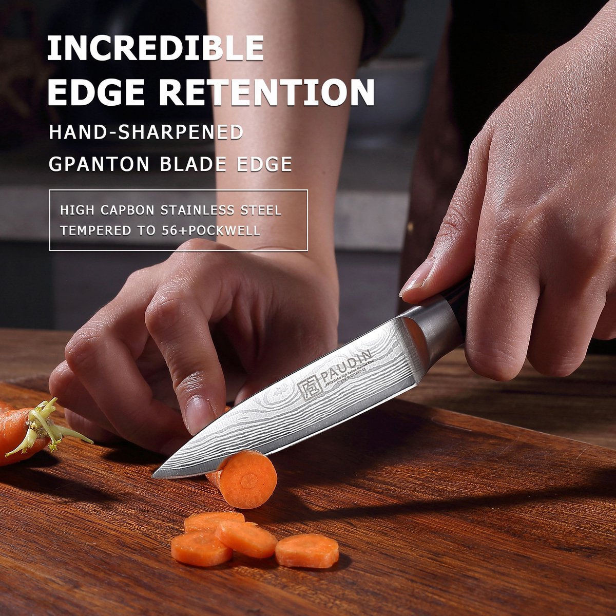 De keerzijde is dat sommige extreem harde messen de scherpte nog langer vasthouden, maar die zijn vaak kwetsbaarder en lastiger te slijpen. Dit PAUDIN N8 vindt een fijne middenweg tussen scherptebehoud en onderhoudsgemak.