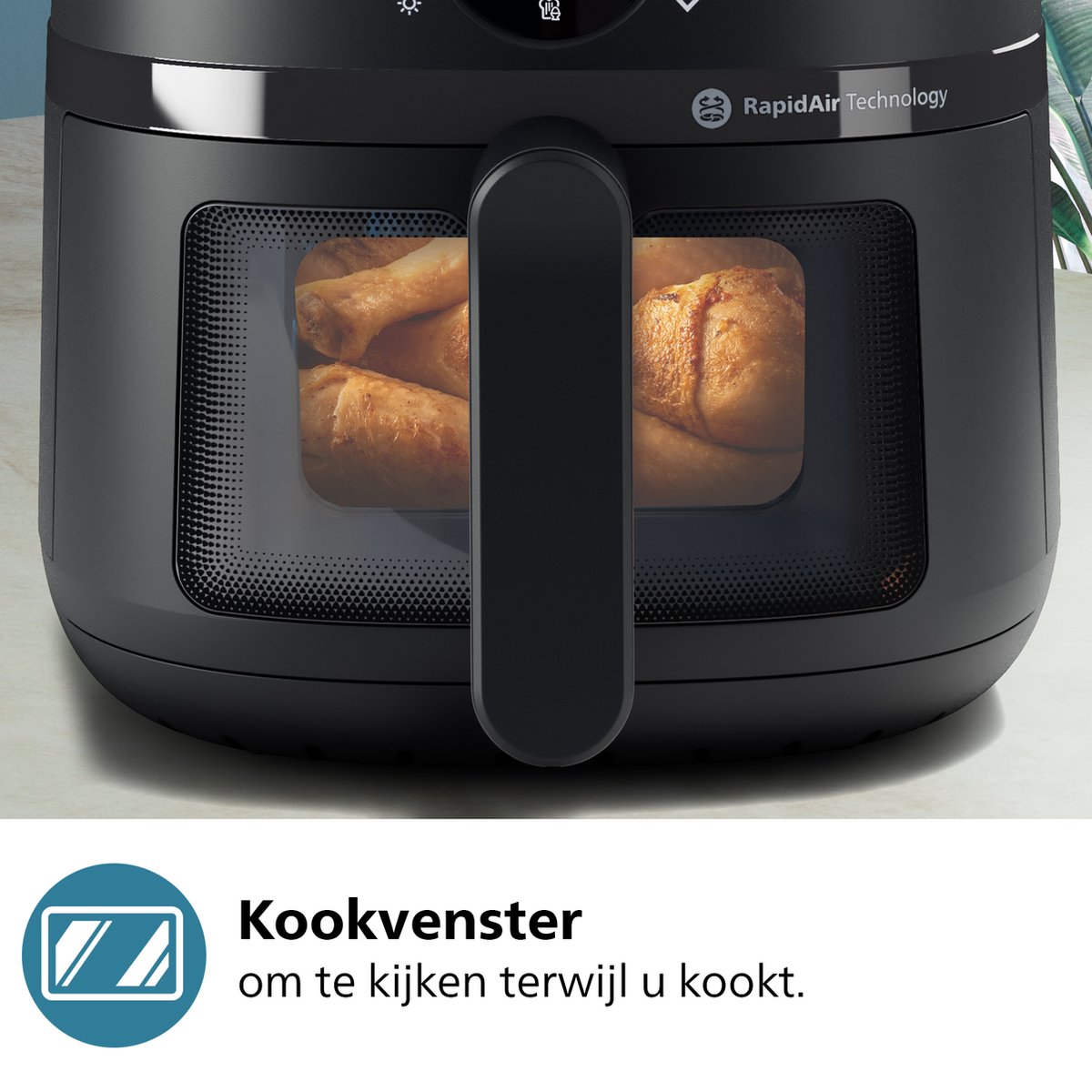 | Knapperige resultaten met gelijkmatige luchtcirculatie dankzij RapidAir-technologie | Geen dubbele kookzone of scheidingswand vermeld; je bereidt één gerecht per keer |