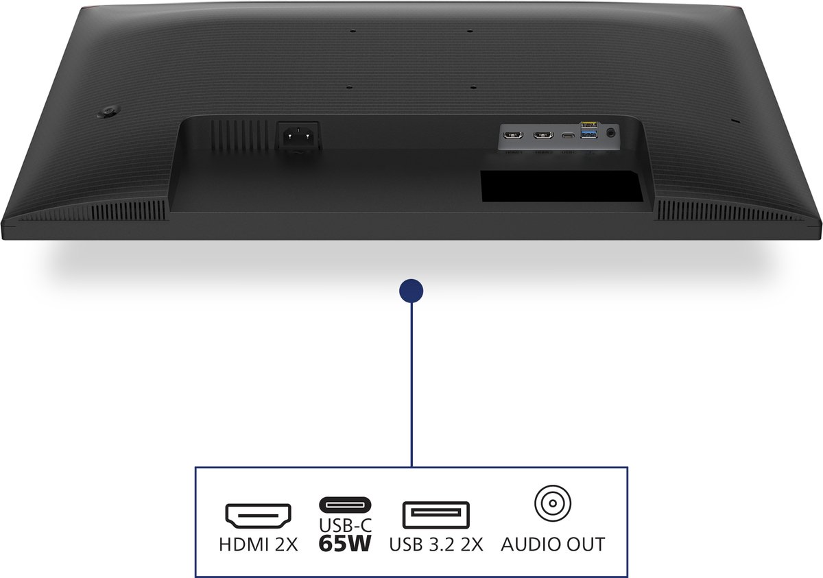 - Vergaderruimte of flexplek? Geen gezoek naar een oplader: de monitor voedt je laptop zolang 65 W voldoende is.