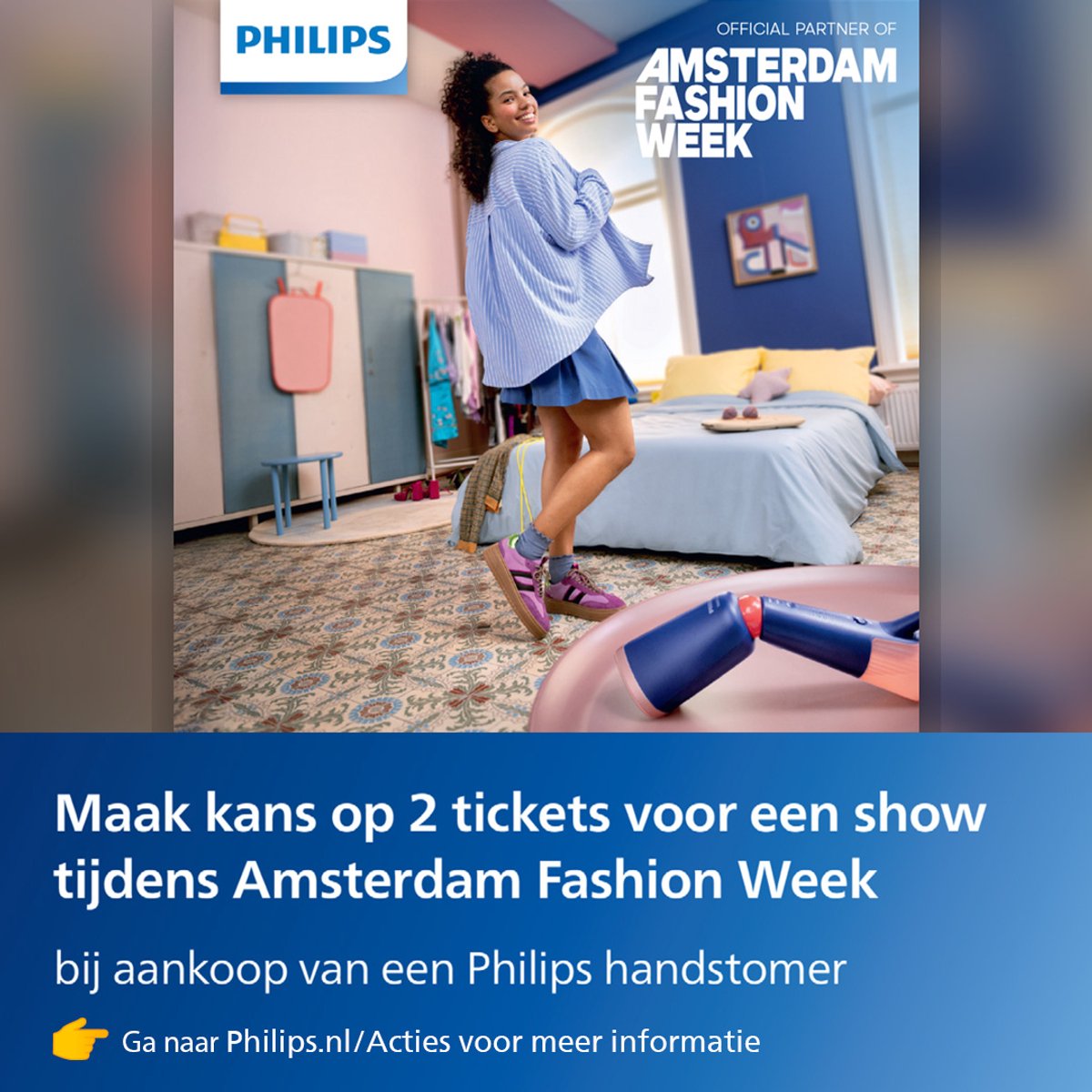 De Philips Handstomer 5000 is een compacte, krachtige kledingverfrisser voor thuis en onderweg. Hij warmt razendsnel op, werkt zonder strijkplank en is ontworpen om kreukels in dagelijks draagbare kledingstukken doeltreffend te verminderen. Als officiële partner van AFW 2025 koppelt Philips mode aan gemak; bij aanschaf van dit model maak je volgens de fabrikant bovendien kans op front-row plaatsen bij het evenement.