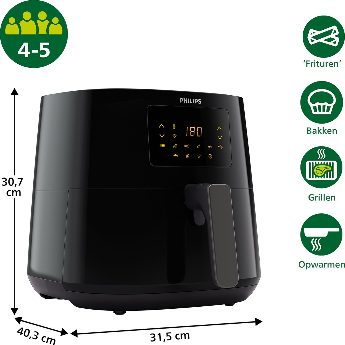 Specificaties: Philips Essential 5000 Series – Airfryer XL – HD9280/90 – 6.2L – Tot 5 Personen review: minder vet frituren, hoge prestaties