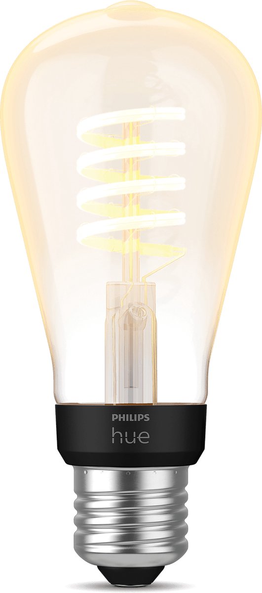 De Philips Hue Edisonlamp ST67 is een slimme, vintage ogende filamentlamp met E27-fitting die warm tot koel wit licht levert. Hij combineert de nostalgische uitstraling van een kooldraadlamp met de moderne bediening van Philips Hue: bediening via Bluetooth, integratie met een Hue Bridge en spraakbesturing via de bekende assistenten.