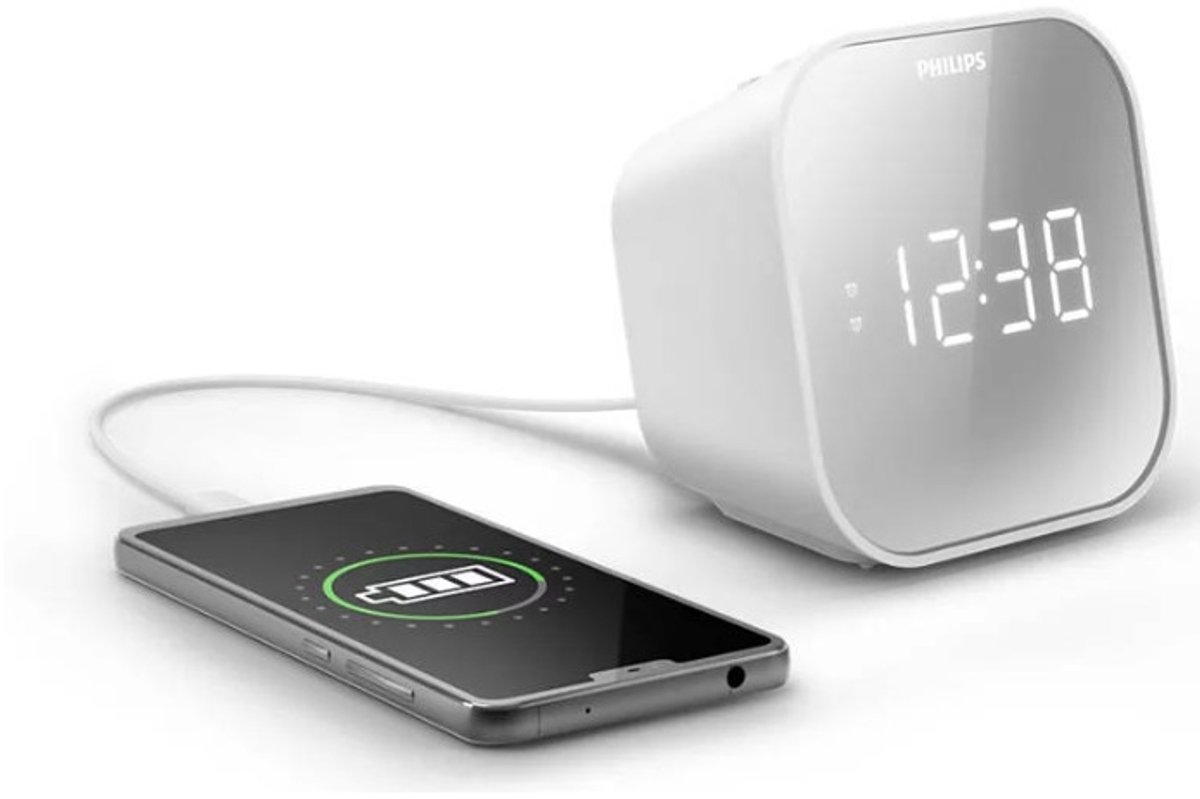De ingebouwde USB-poort maakt van deze wekkerradio ook een oplader voor je mobiele telefoon terwijl je slaapt. Dat scheelt een extra lader op je nachtkastje en zorgt dat je ’s ochtends met een vol apparaat begint. Dit maakt de Philips TAR4406 FM-klokradio geschikt voor wie meerdere apparaten wil combineren in één nachtkastje-oplossing. Let op: de exacte laadsnelheid of output (bijvoorbeeld 5V/1A) is niet gespecificeerd in de listing (bron: listing, gecontroleerd 2025).