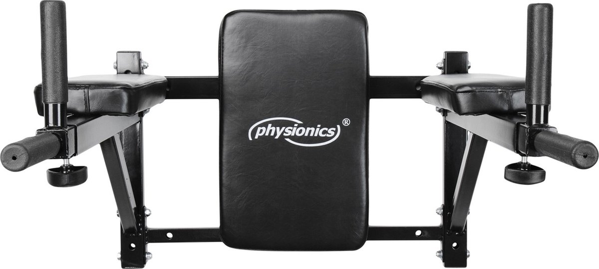 Het Physionics Ab Dip Station is een wandgemonteerd trainingsstation om zonder veel ruimteverlies bovenlichaam- en buikspieroefeningen te doen. Je gebruikt het voor dips, leg raises, knee raises en soortgelijke oefeningen die borst, triceps, schouders en buikspieren aanspreken.