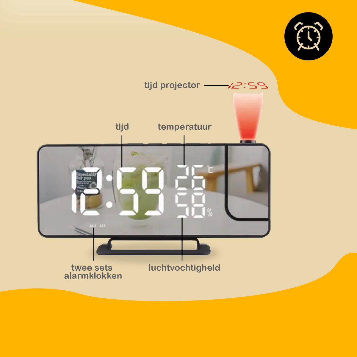 Projectie van de tijd (180° draaibaar, helderheid instelbaar)