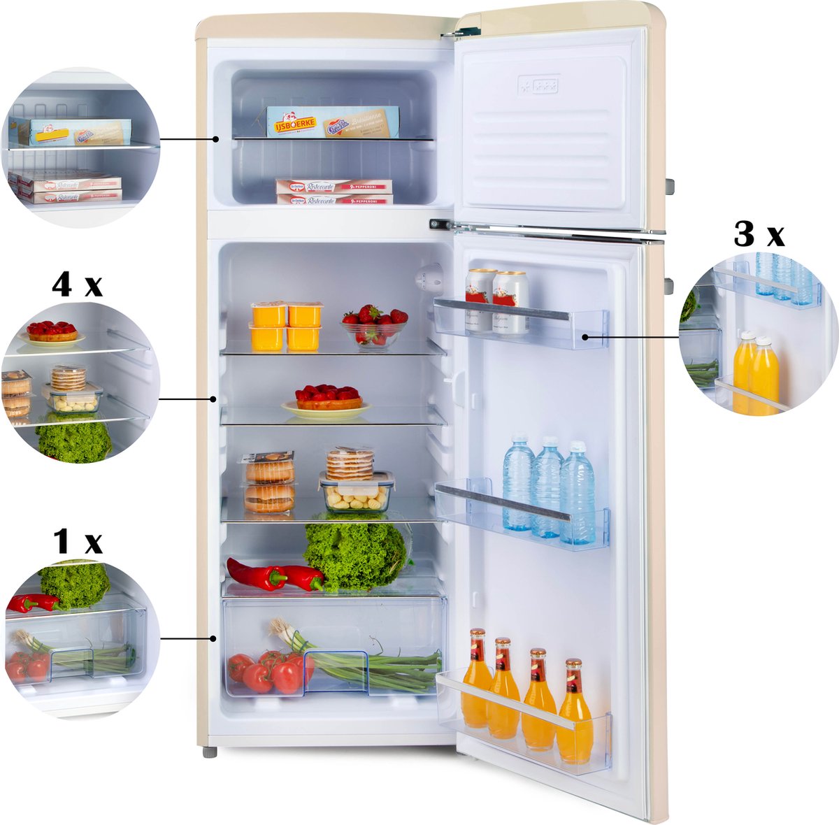 - Wie een stijlvolle retro-koelkast wil die ook praktisch is ingedeeld.
