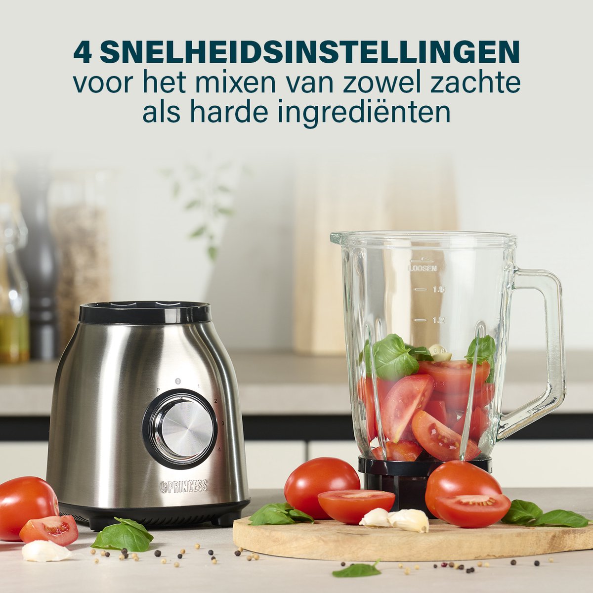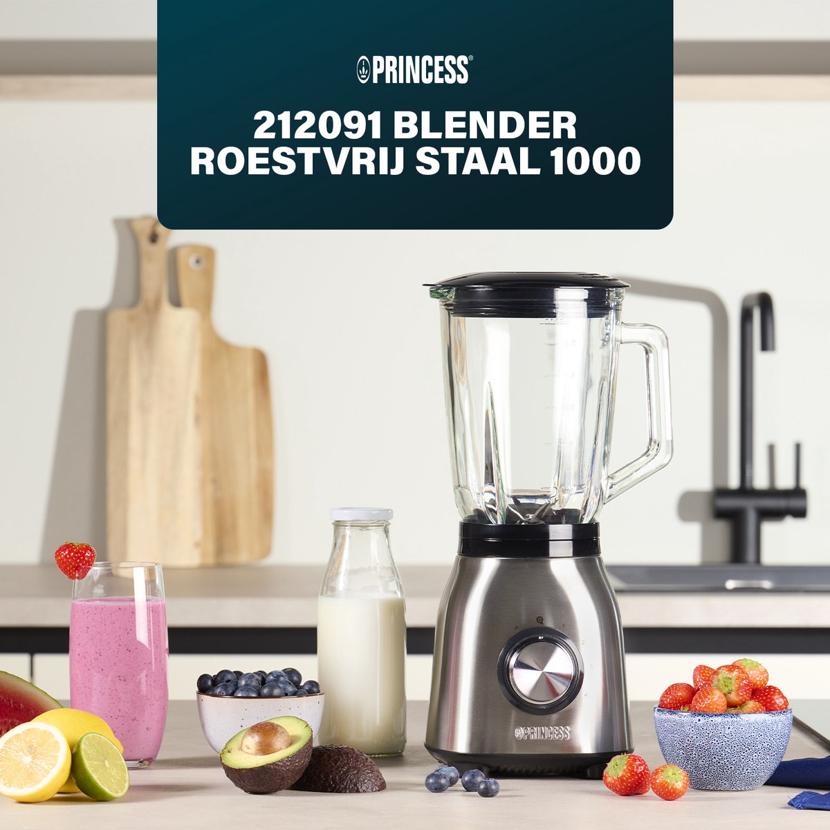 Stel Notificatie voor Product in: Princess 212091 Blender RVS 1000 – 4 snelheidsinstellingen – 1.5 L - Krachtig 1000W - Glaskan - €39,99
