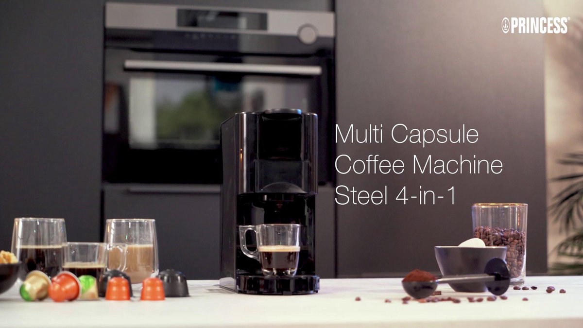 De Princess 249450 Multi Capsule filter-koffiezetapparaat is een compacte, veelzijdige machine die verschillende kapselsystemen en pads ondersteunt. Met adapters voor Nespresso®, Dolce Gusto® en ESE-pads plus de mogelijkheid om gemalen koffie te gebruiken, is het een oplossing voor huishoudens die graag wisselen tussen koffiestijlen zonder meerdere apparaten.