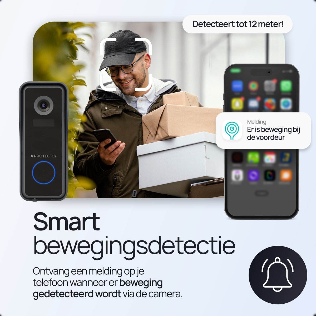 De Protectly Slimme Draadloze 2K Video Deurbel is een moderne deurbel met camera die je voordeur bewaakt in hoge resolutie, meldingen stuurt bij beweging of geluid en waarmee je meteen kunt praten met bezoekers. Alles verloopt via de Nederlandstalige CloudEdge-app en je hebt geen abonnement nodig om de belangrijkste functies te gebruiken.