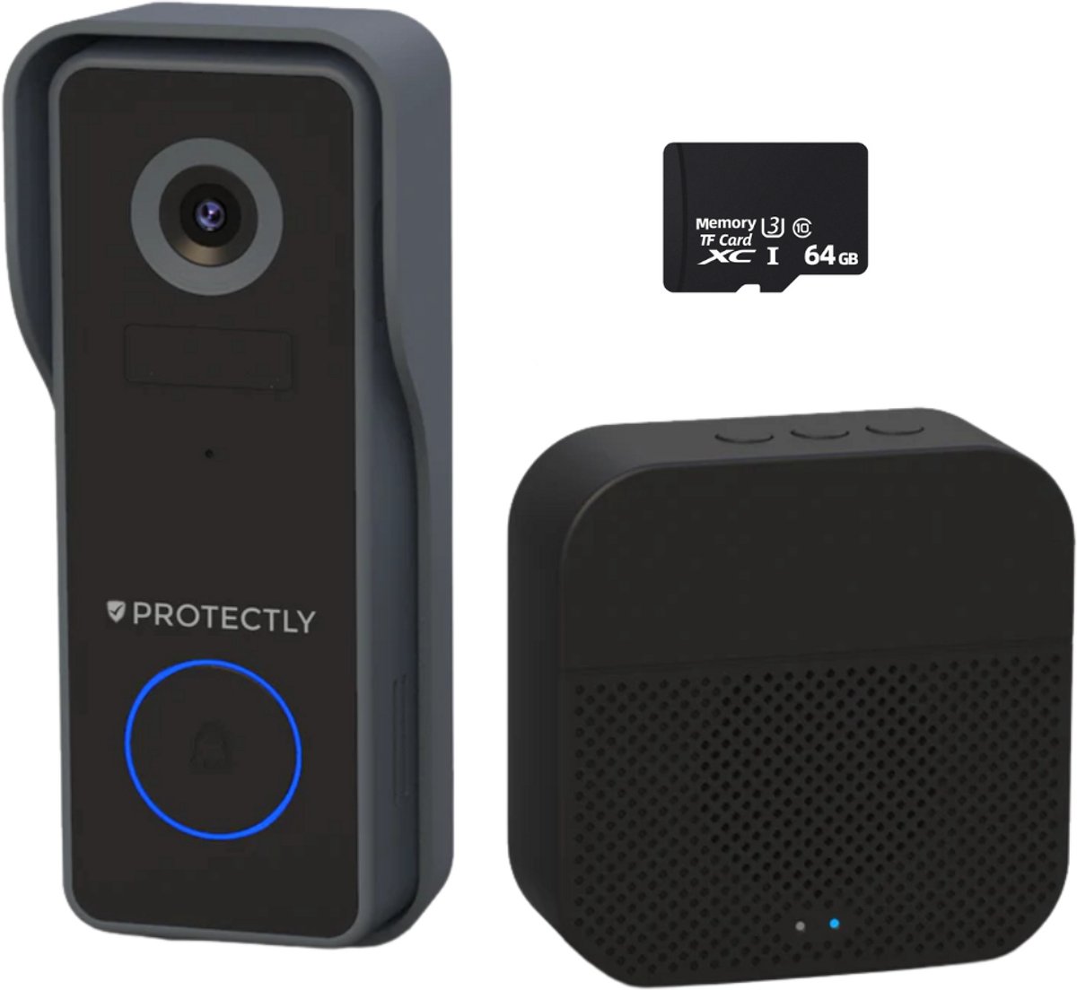 De Protectly Slimme Draadloze 2K Video Deurbel geeft je altijd zicht en controle over je voordeur, ook wanneer je niet thuis bent. Dankzij de Nederlandstalige app en de meegeleverde 64GB SD-kaart beheer je opnames zonder abonnement.