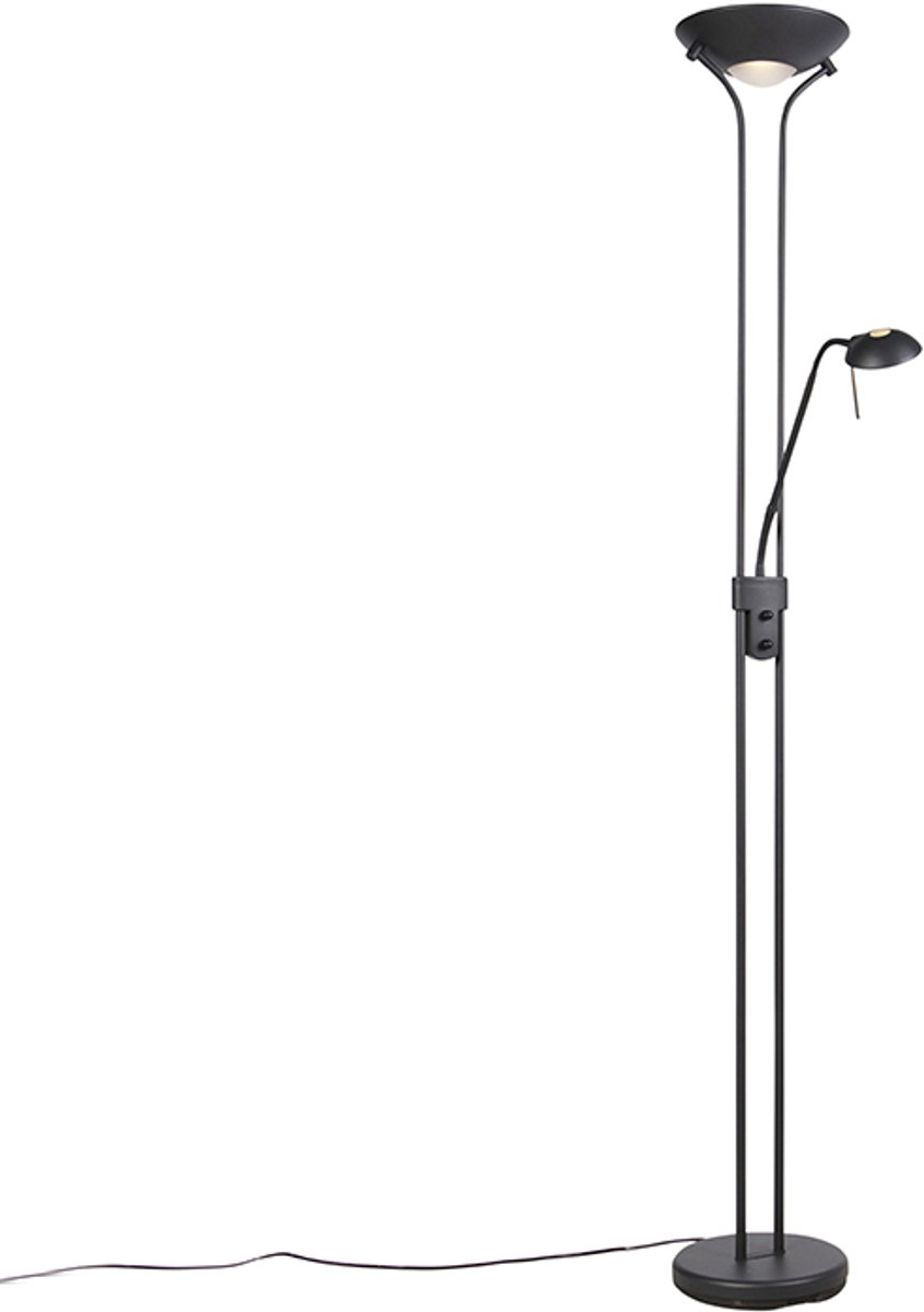 Vloerlamp zwart met leeslamp incl. LED en dimmer – Diva 2 + indien nodig handleiding en bijbehorende bevestigingsmaterialen.