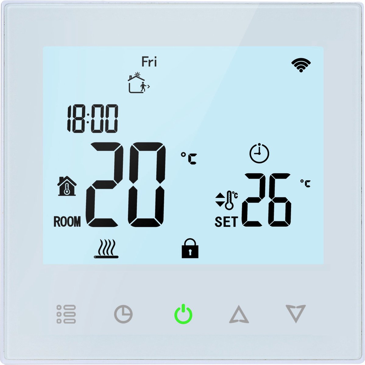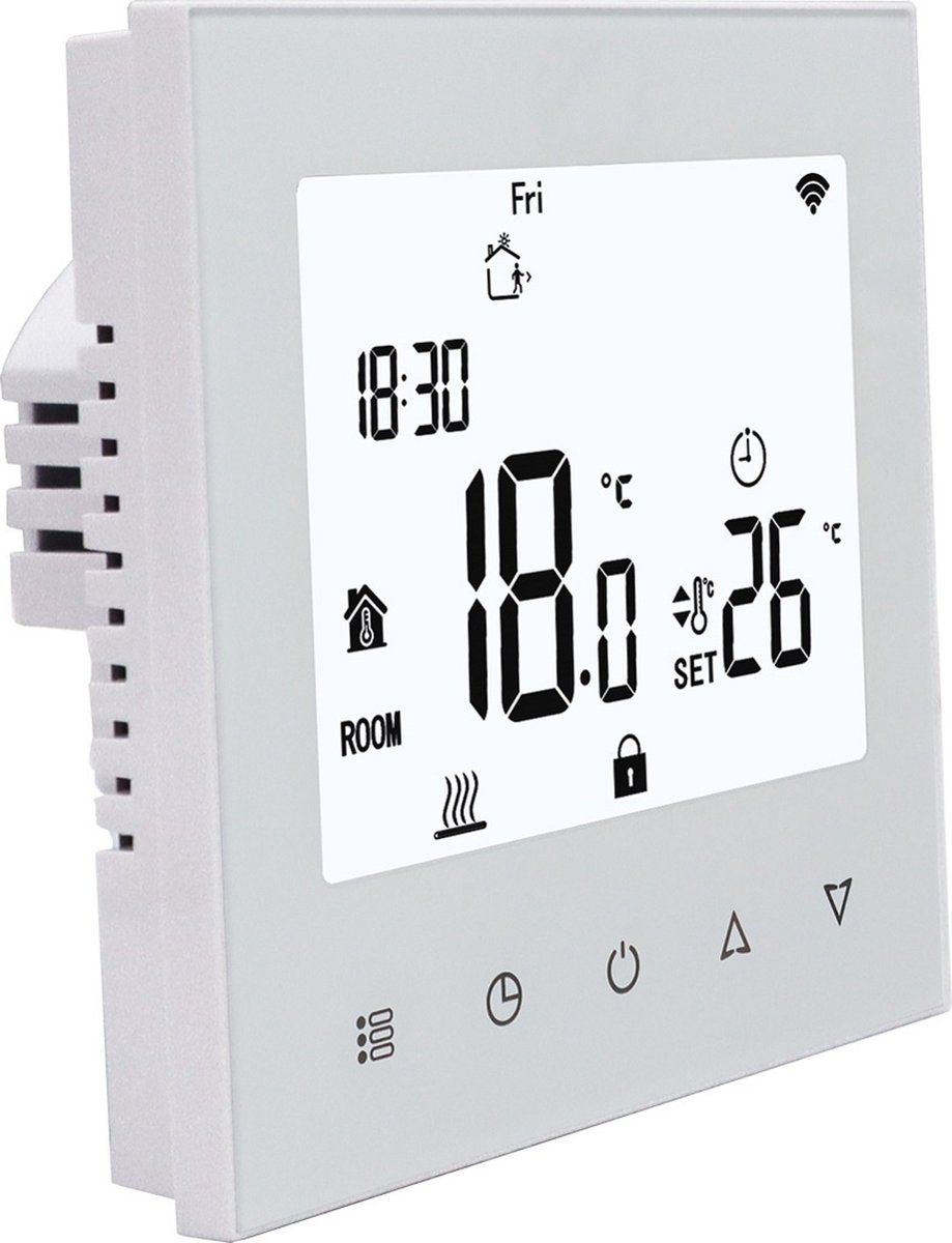 PrestatiesIn dagelijks gebruik valt vooral het gemak van de bediening en de voorspelbaarheid op. Het full‑color display maakt de status in één oogopslag duidelijk. De 7‑daagse planning met 6 periodes per dag geeft voldoende vrijheid zonder onnodige complexiteit. De zelflerende aansturing zorgt ervoor dat comforttijdstippen betrouwbaar worden gehaald, ook als het buiten kouder is. En door de combinatie van lucht- en vloersensor kun je de regeling afstemmen op comfort of vloerbegrenzing, afhankelijk van de ruimte.