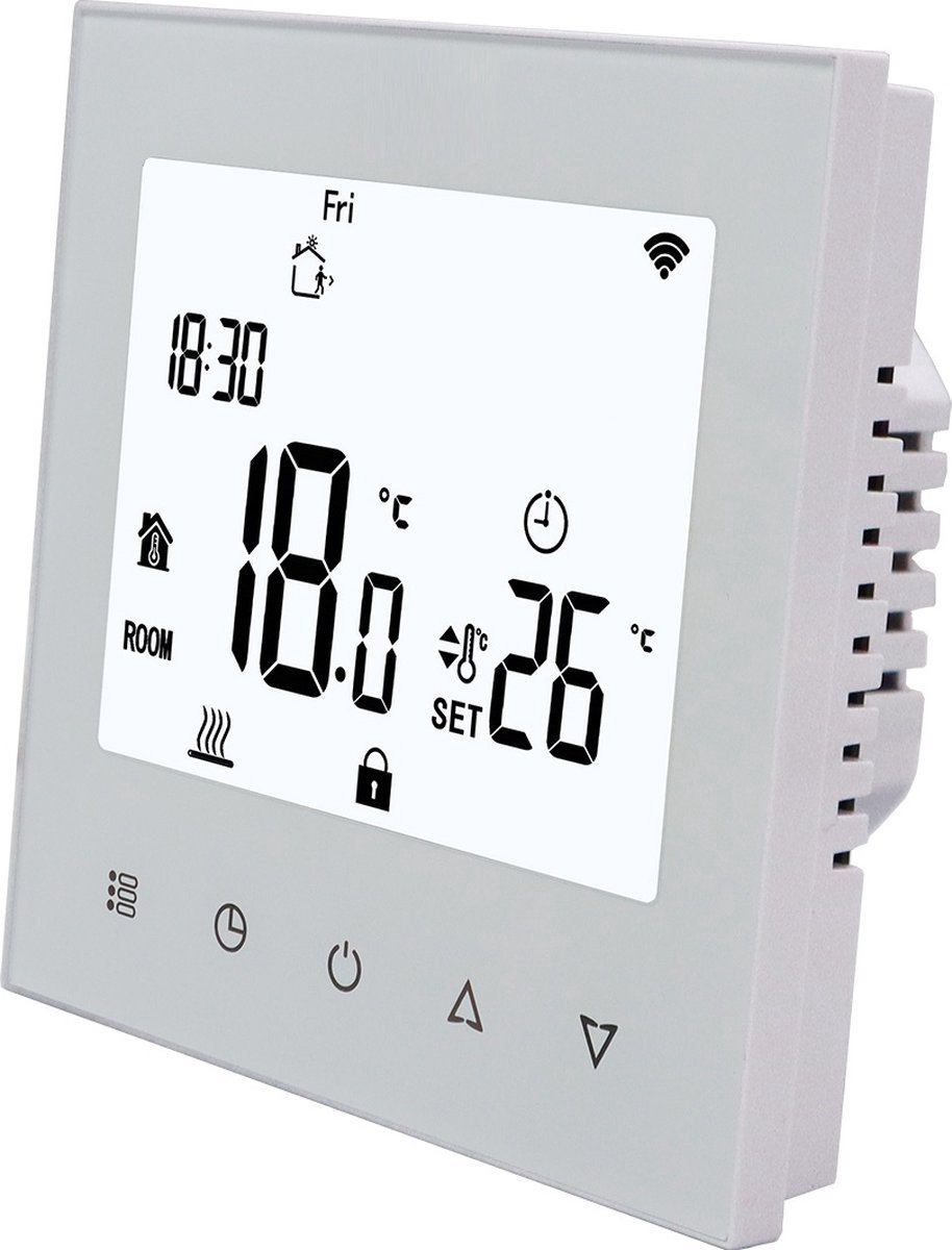 - Controleer of je elektrische vloerverwarmingssysteem aansluitbaar is op deze thermostaat. Omdat voeding en maximale belasting niet vermeld zijn, is het verstandig de officiële documentatie te raadplegen of je installateur te vragen om bevestiging.