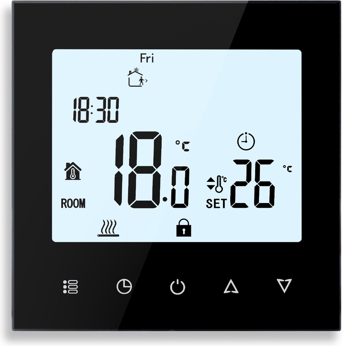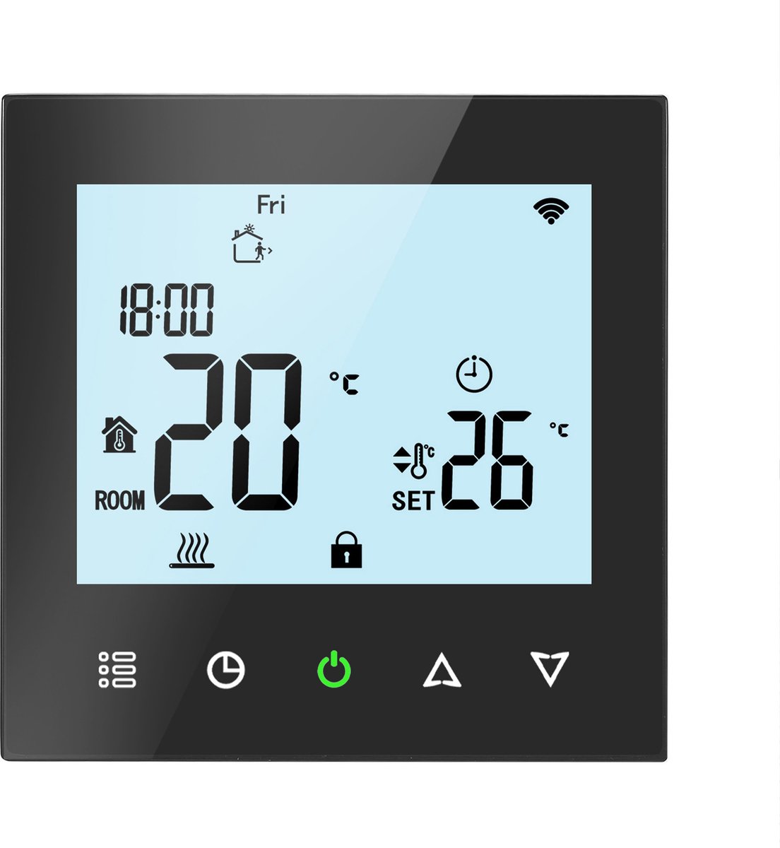 - Je een strak ogende, programmeerbare thermostaat zoekt met een groot, goed afleesbaar scherm.