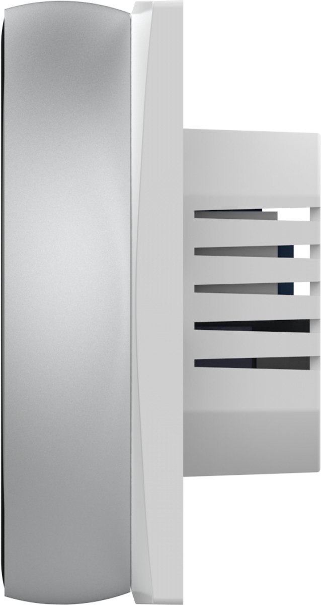 De geringe dikte aan de zichtzijde geeft een bijna vlakke afwerking, wat vooral in moderne interieurs gewaardeerd wordt. De aanraaktoetsen voorkomen vuilophoping rond mechanische knoppen en dragen bij aan eenvoudig onderhoud. De materialen van de behuizing en de exacte kleurafwerking zijn niet vermeld, maar het geheel is bedoeld voor binnengebruik in droge ruimtes.