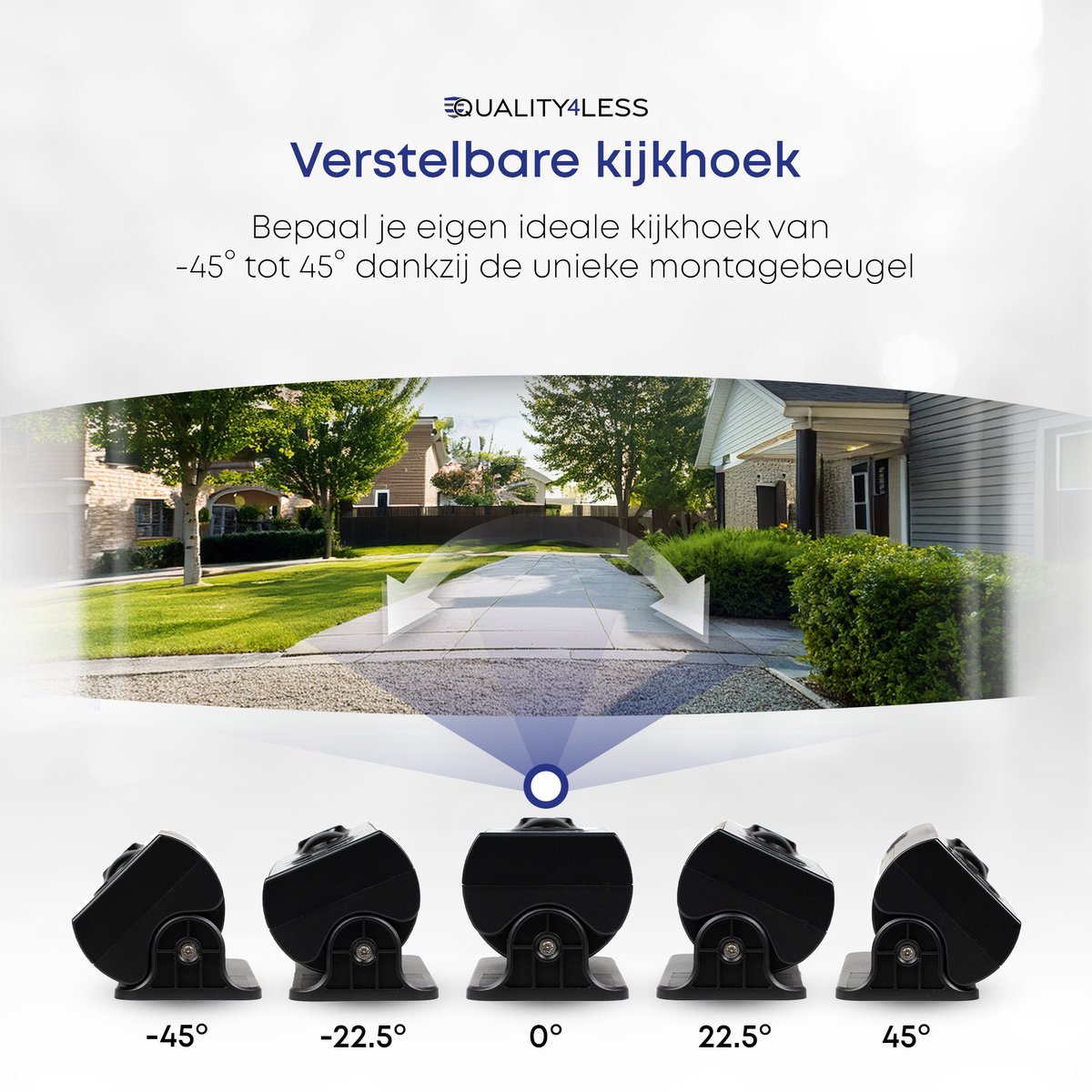 | Verstelbare kijkhoek met meegeleverde beugel (-45° tot 45°) | Officiële weer- of beschermingsklasse niet vermeld |