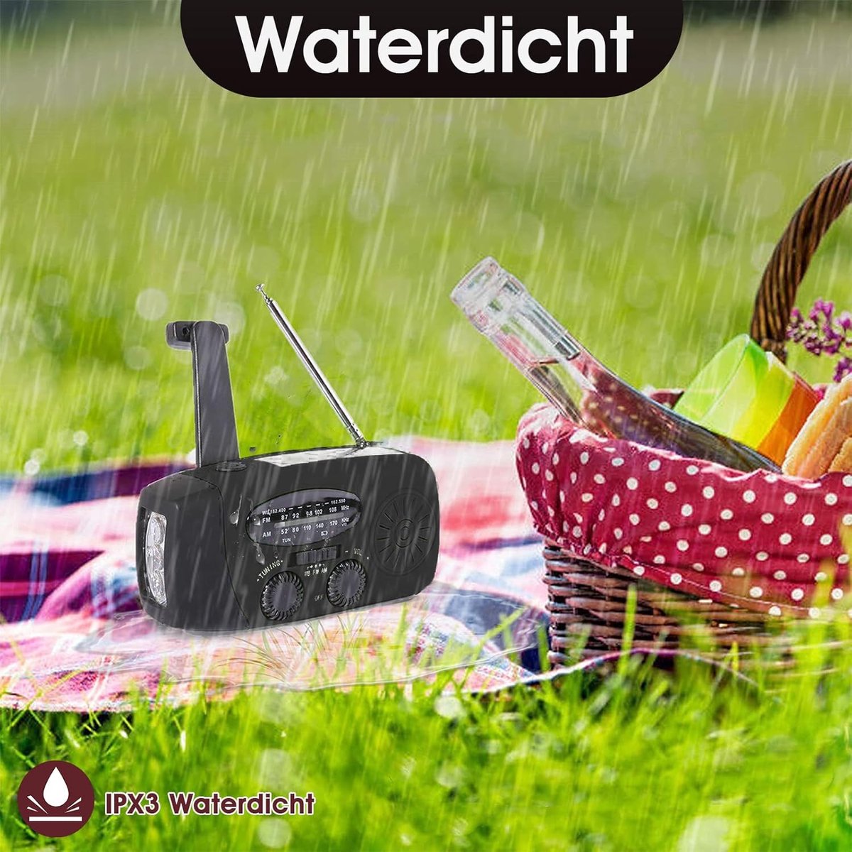 Integreert radio, zaklamp, SOS-alarm en powerbank in één compact apparaat | Geen IP-waterdichtheid of robuuste rating vermeld — onzeker bij zware blootstelling aan regen/sneeuw (bron: productpagina, gecontroleerd 2025) |