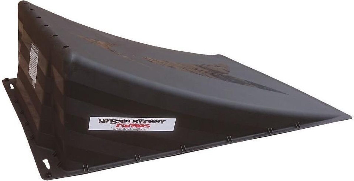 De schans is gemaakt van polyester, een materiaal dat licht van gewicht is en bestand tegen de meeste weersomstandigheden bij recreatief gebruik. Met afmetingen van 70 x 100 x 30 cm is de ramp compact genoeg om in een auto of schuurtje te schuiven en past hij in veel kofferbakken. Het totale gewicht van 5 kg maakt tillen en verplaatsen eenvoudig, ook voor één persoon.