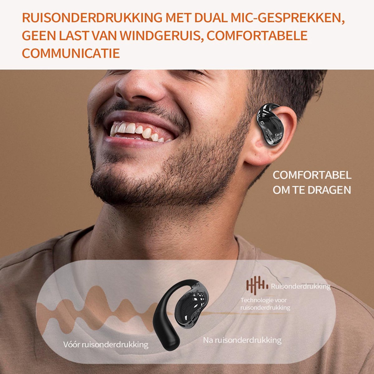 - Gebruik de ruisonderdrukking in drukke ruimtes en zet deze uit indien je omgevingsgeluid bewust wilt horen.