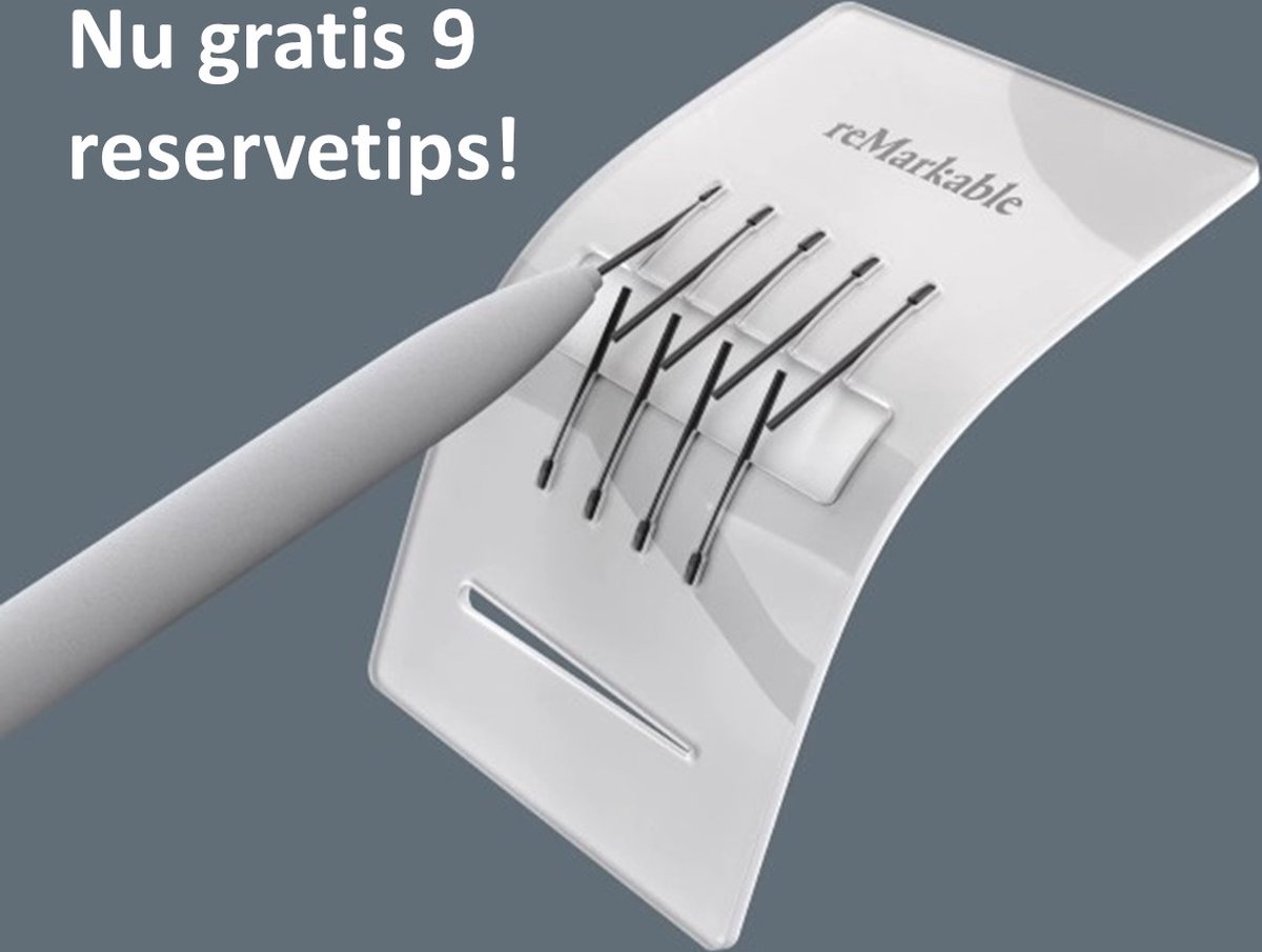 - 1x reMarkable 2 Marker Plus (magnetische stylus met gum) — inclusief 9 extra vervangende puntjes