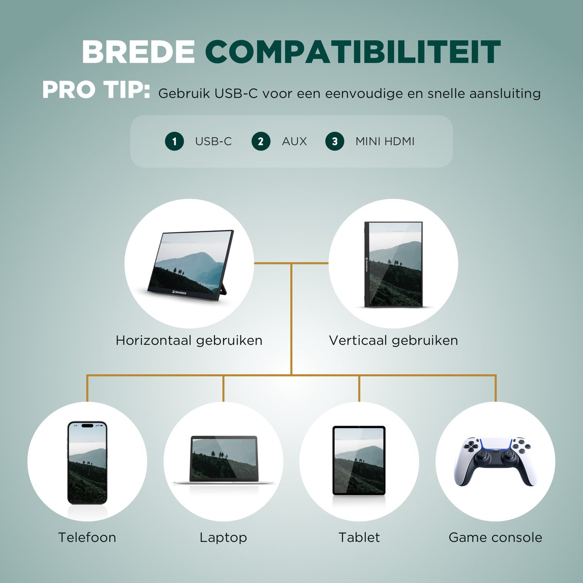 - Je een draagbare monitor 16 inch wilt die je snel en netjes kunt aansluiten via USB‑C of Mini HDMI.