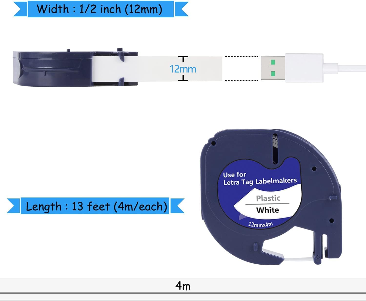 Compatibel met veel LetraTag-modellen (geschikt voor breed gebruik) | Alleen 12 mm breed — niet ideaal voor lange of brede labels |