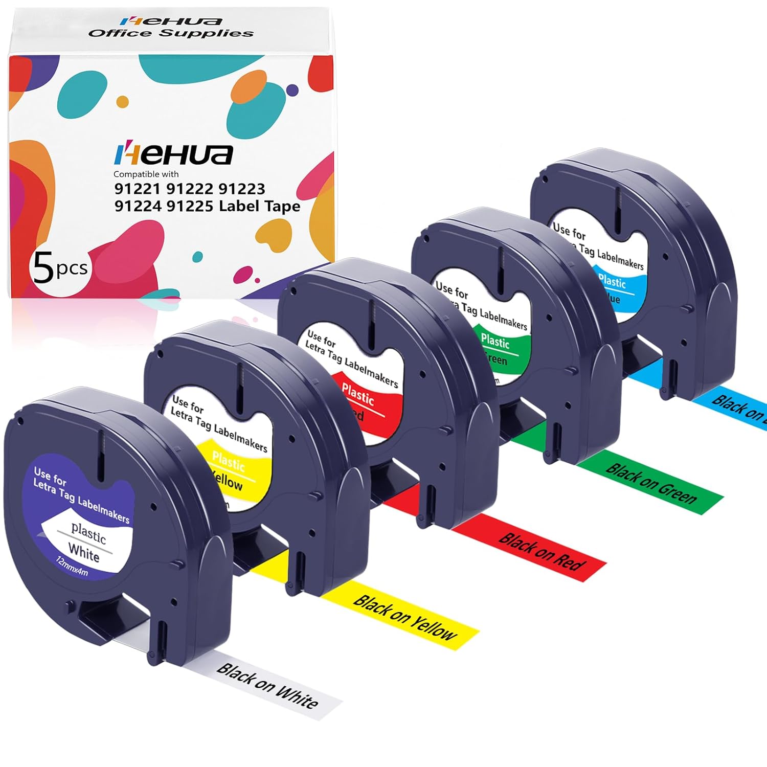 Overzicht:Set van vijf vervangende etikettapes compatibel met Dymo Letra Tag, ideaal voor Nederlandse kantoren en magazijnen die kleurcodering en overzicht willen. Elke rol is 12 mm x 4 m van kunststof, water- en chemisch bestendig voor langdurig gebruik.