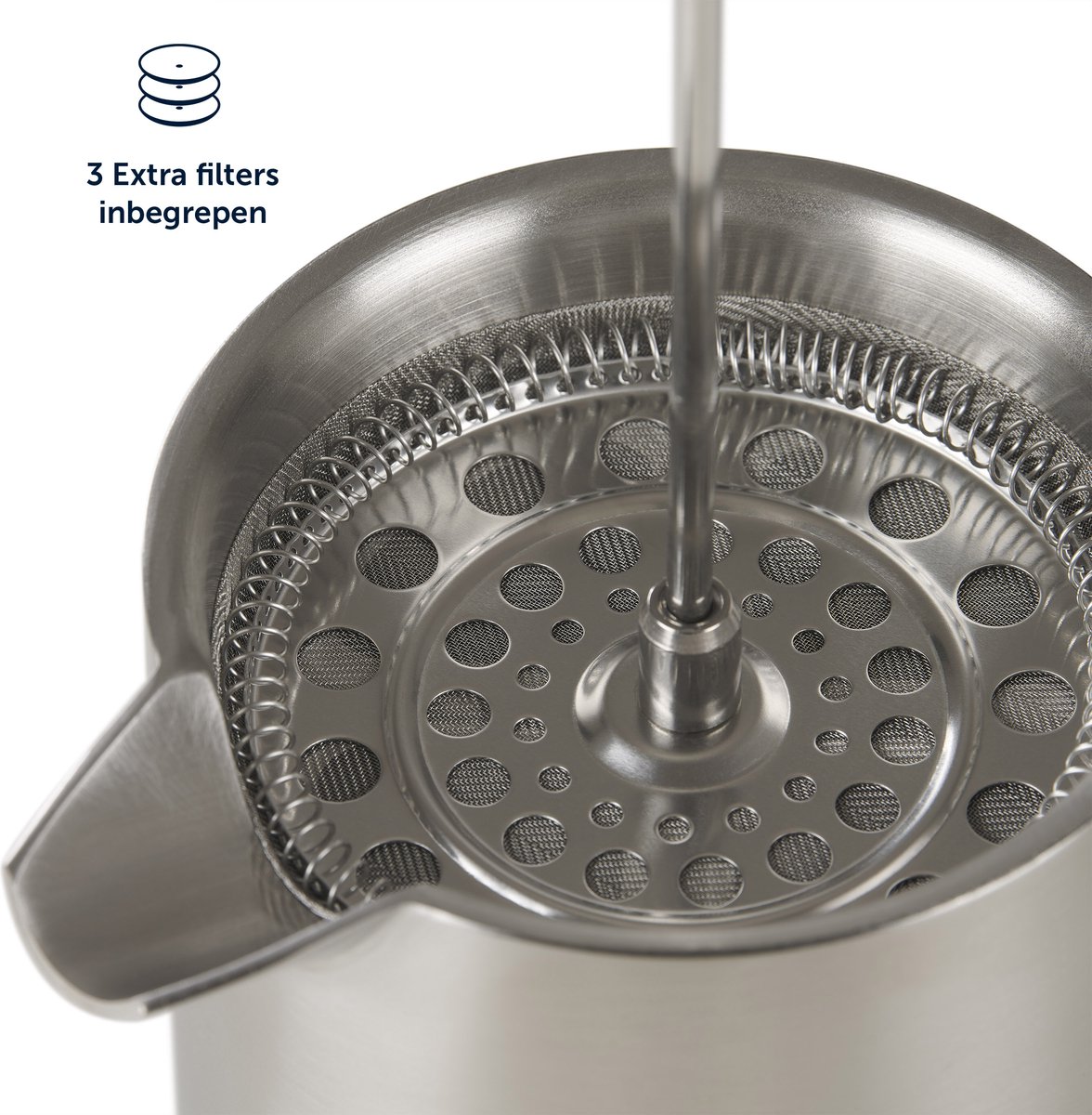 • De meegeleverde reservefilters maken schoonmaken en onderhoud flexibeler: als een filter poreus of beschadigd raakt, kun je snel wisselen zonder kwaliteitsverlies in de zetmethode.