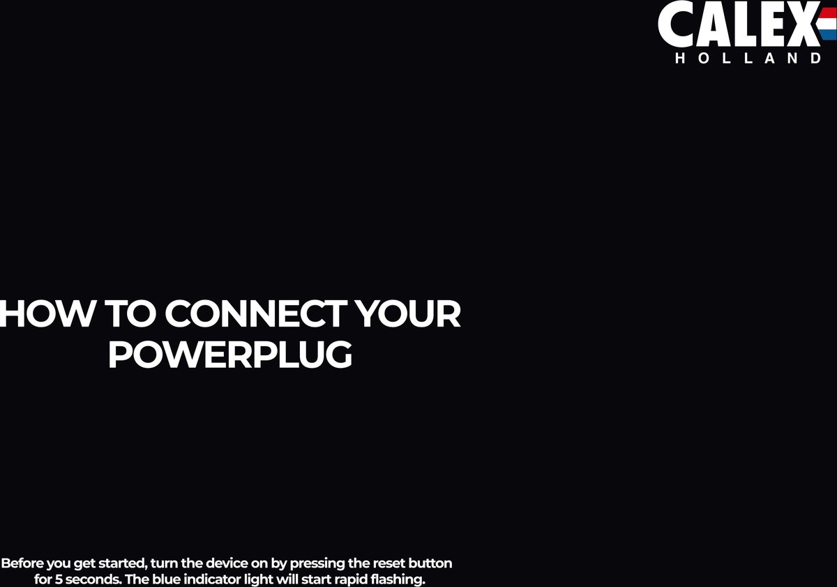 • Basisstappen (algemeen): steek de Calex slimme stekker in een stopcontact, open de Calex App, volg de koppelinstructies in de app om verbinding met je WiFi te maken. De exacte stappen staan in de handleiding of in de app zelf.