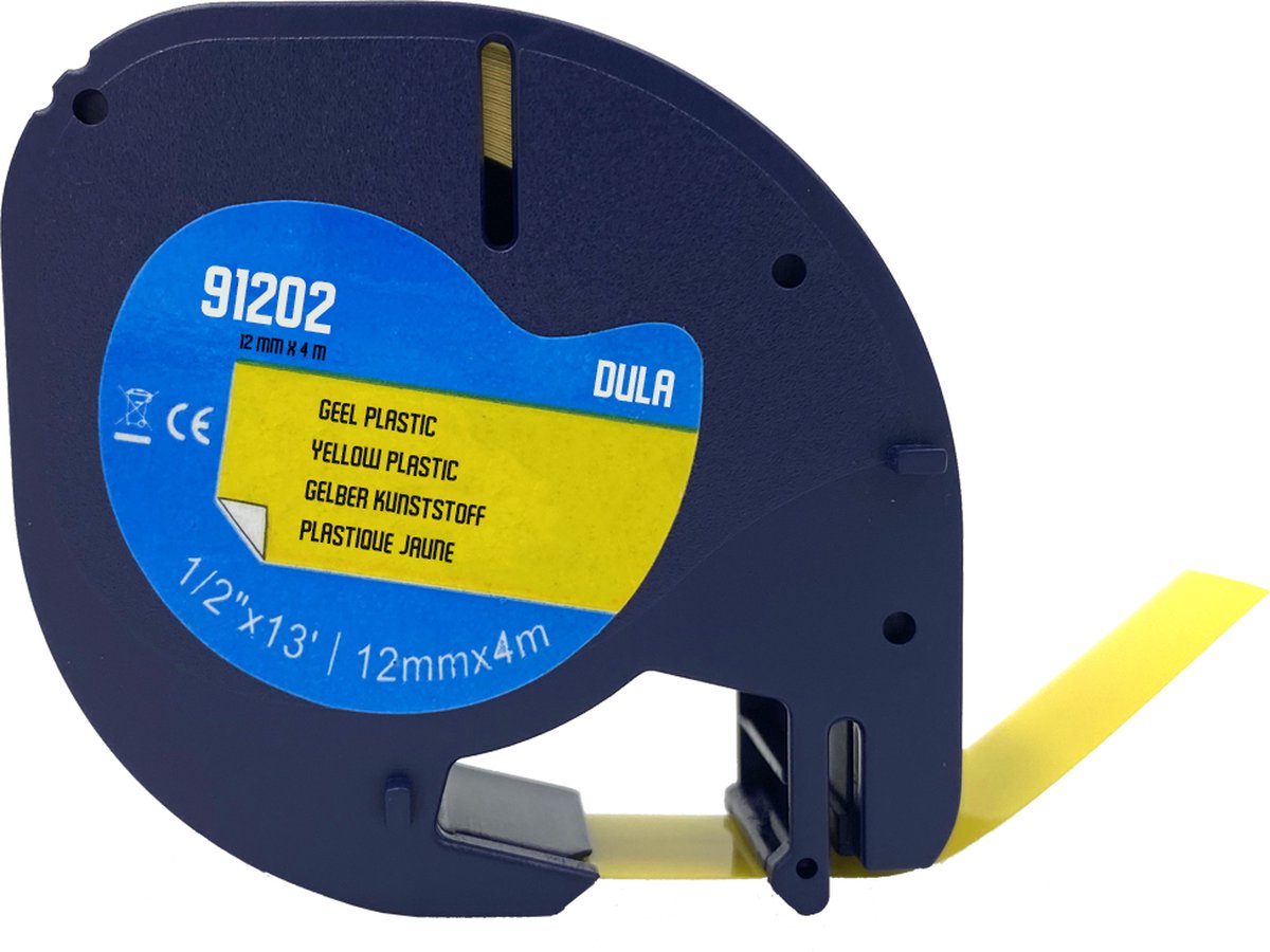 Overzicht:De DULA 91202 is een gele gelamineerde etikettape voor Dymo LetraTag, ideaal voor Nederlandse kantoren die duurzame, goed leesbare etiketten nodig hebben. De permanente lijm zorgt dat etiketten stevig blijven zitten.