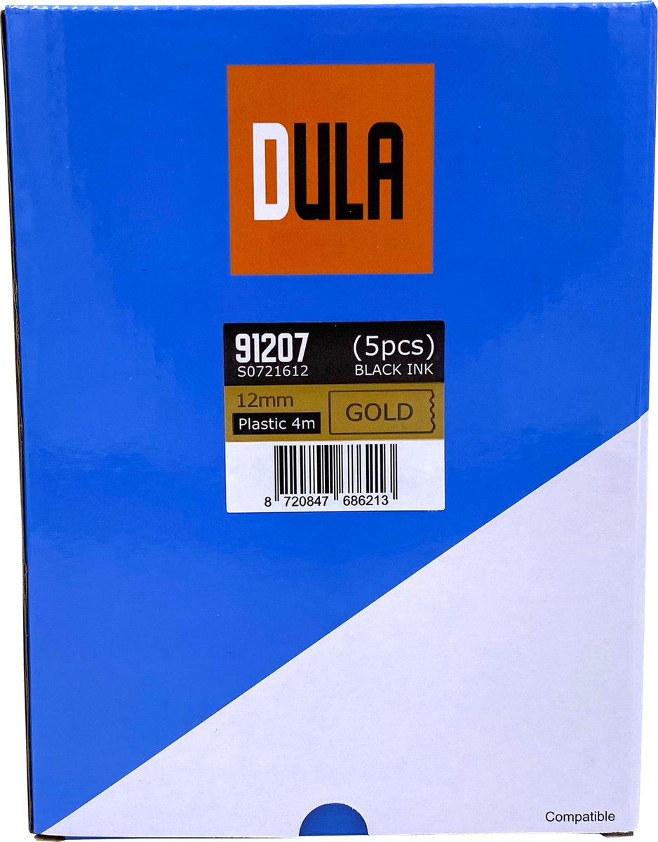 • 1x DULA 91207 / S0721612 gouden plastic labeltape, 12 mm x 4 m (bron: listing, gecontroleerd 2025)