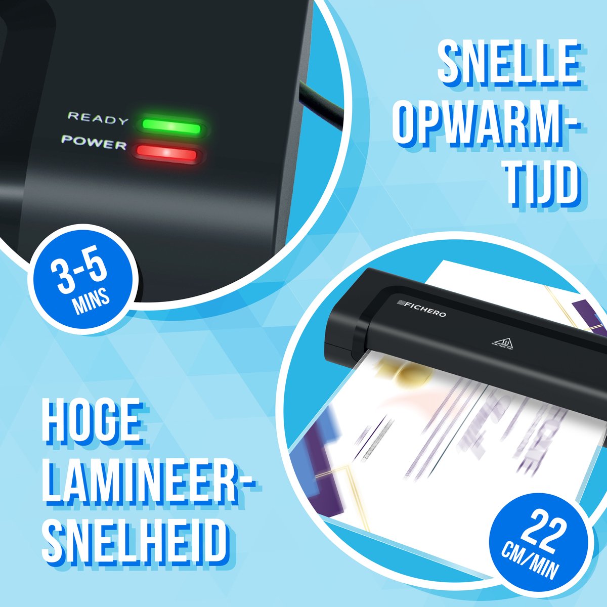 Specificaties: Review: Fichero A4 lamineerapparaat (incl. 5 lamineerhoezen)