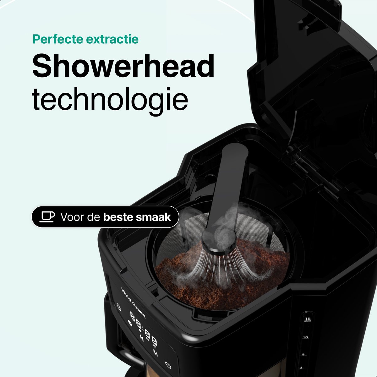 Showerhead technologie voor gelijkmatige extractie en betere smaak (bron: listing, gecontroleerd 2025) | Warmhoudfunctie beperkt tot 2 uur; voor langere periodes moet je opnieuw zetten |