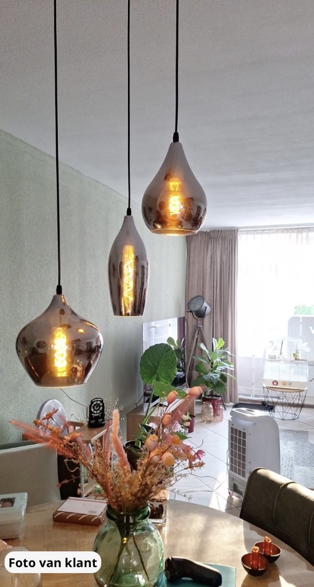 Voordeel in de praktijk: boven een ronde salontafel of kleine eettafel vormt de druppelvorm een mooi omlijstend accent zonder de tafel te domineren.
