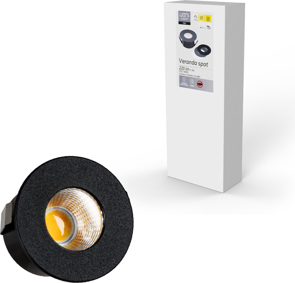 Het lage wattage (3,5 W) en het geringe formaat maken ze licht van gewicht en makkelijk hanteerbaar tijdens installatie. Doordat de spotjes relatief klein zijn, vallen ze discreet weg in het plafond — dat is ideaal als je meerdere spots wilt plaatsen zonder dat ze dominant ogen. De zwarte kleur geeft een strakker contrast in lichte plafonds en een rustige afwerking bij donkere balken of buitenoverkappingen.