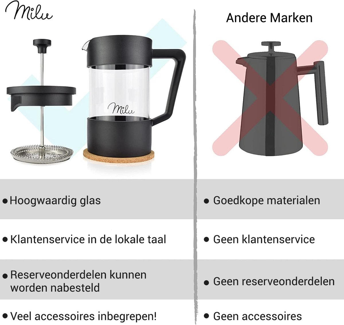 Specificaties: Review: Milu French Press — glazen cafetière met handige accessoires