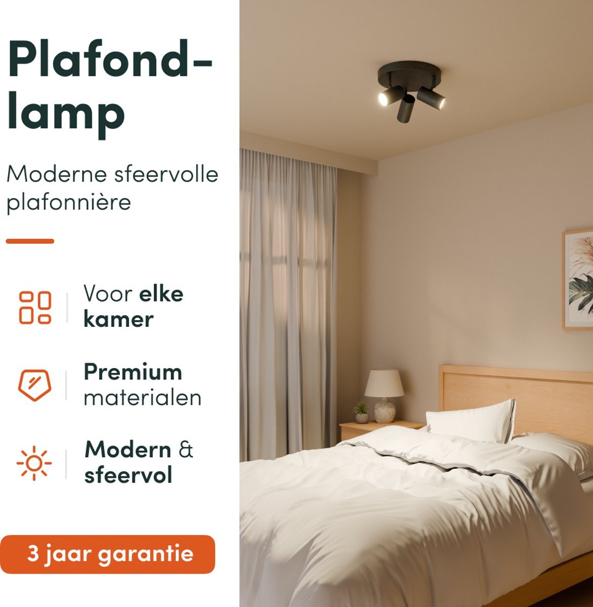 • Materialen: Niet gespecificeerd. Veel plafondlampen in deze prijsklasse gebruiken metaal (bijv. staal of aluminium) voor de behuizing van spots en montageplaat. Omdat de fabrikant dit niet specifiek vermeldt, kun je bij twijfel de productfoto’s of verkoper navragen.