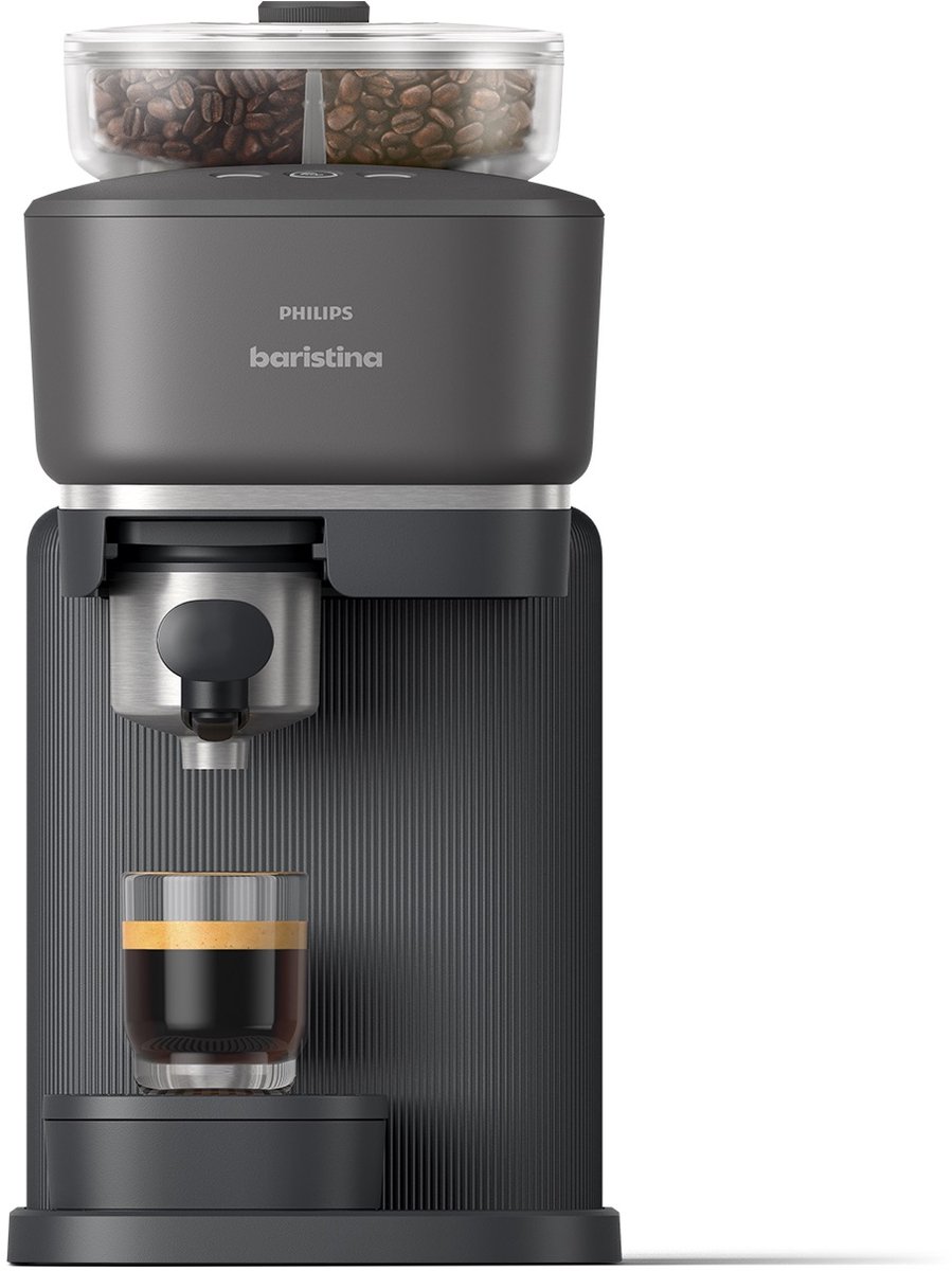 De Philips Baristina is een compacte automatische espressomachine die koffiebonen maalt, doseert en aanstampen voor je overneemt. Hij richt zich op mensen die een echte espresso willen zonder het gedoe van handmatig malen en tampen, en die weinig ruimte op het aanrecht willen opofferen.