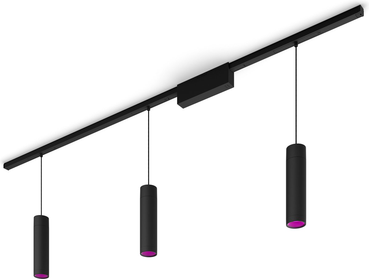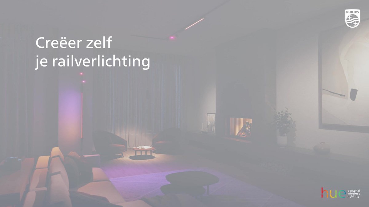De rail is volledig uit te breiden: je kunt spots, lichtbalken en extra hanglampen toevoegen en de elementen na installatie eenvoudig verschuiven of vervangen. Bedien je verlichting via de Hue app of kies een van de vooraf ingestelde lichtscènes om snel de juiste sfeer neer te zetten. Kort oordeel: een flexibele, stijlvolle oplossing voor wie een slim verlichtingssysteem wil dat met je woonwensen meegroeit.