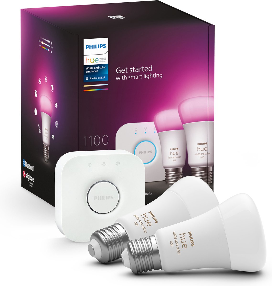De Philips Hue starterkit brengt slimme verlichting binnen handbereik: twee slimme lampen met E27-fitting die kleur én warm-wit tot koel-wit licht kunnen geven. Het product is bedoeld voor huiseigenaren of huurders die hun verlichting willen upgraden naar een flexibel, aanpasbaar systeem zonder in elke kamer direct alle lampen te hoeven vervangen.