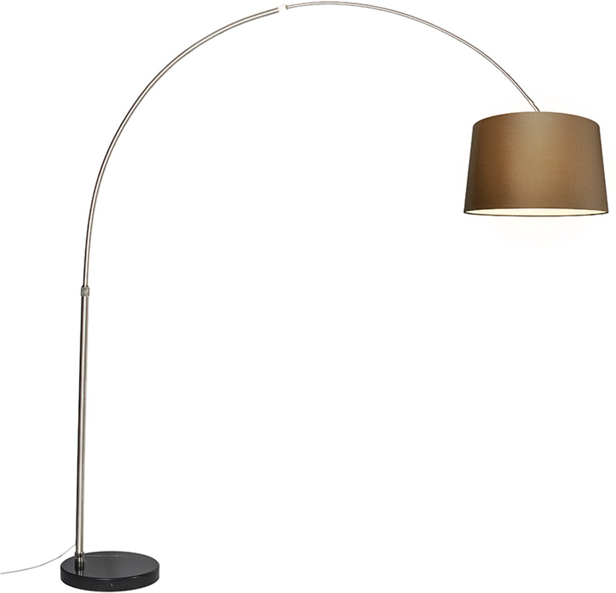 Booglamp staal stoffen kap bruin 45 cm – XXL + indien nodig handleiding en bijbehorende bevestigingsmaterialen.