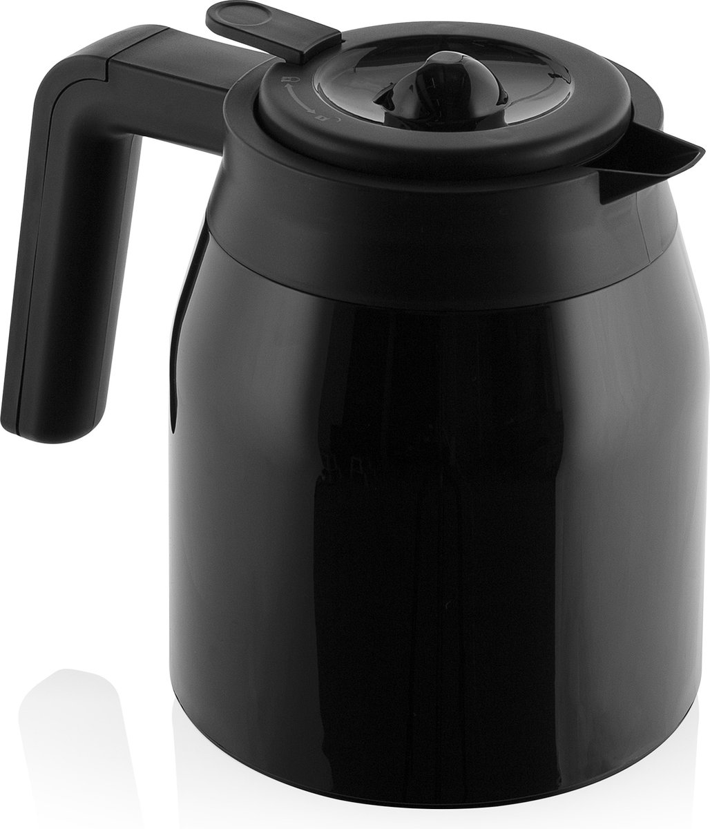 De thermoskan heeft een dubbele wand (geïsoleerde constructie) om warmteverlies te beperken. Dit heeft twee praktische gevolgen: je hebt geen warmhoudplaat nodig en de koffie behoudt langer zijn temperatuur en aroma. De bediening is minimaal: een aan/uit-schakelaar met indicatielampje geeft eenvoudige controle zonder complexe bedieningselementen. Omdat het apparaat licht van gewicht is, is het ook geschikt om mee te nemen tijdens kampeertripjes of in kleinere woonruimtes.