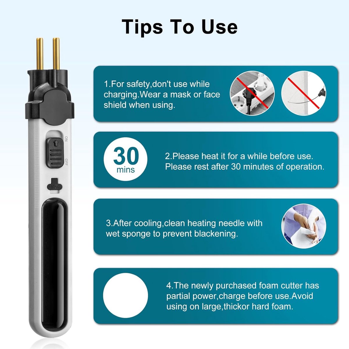 Deze draadloze piepschuimsnijder is gemaakt voor makers die zonder kabels willen werken en toch strakke, gecontroleerde sneden in schuim willen maken. Hij warmt volgens de fabrikant in ongeveer 30 seconden op tot 550 °C, heeft een ultradunne verwarmingsdraad van 0,38 mm en een ingebouwd led-lampje voor goed zicht. Dankzij de 2000 mAh lithium‑ion accu en USB‑C‑aansluiting neem je hem overal mee naartoe.