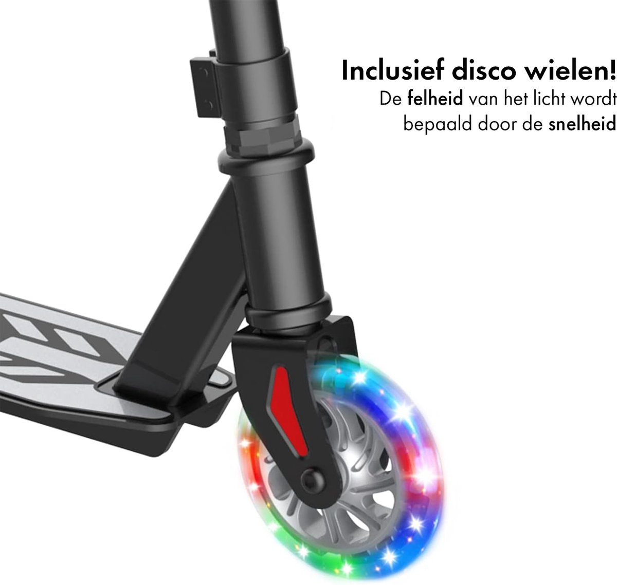 - Geniet van veilige ritten dankzij 12,7 cm PU-wielen met verlichting zonder batterijen.