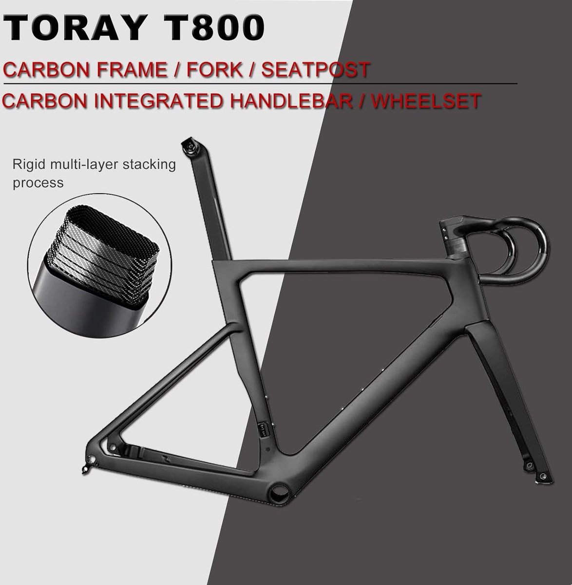 - Verminder trillingen en houd controle door Toray T800 koolstof frame en vork.