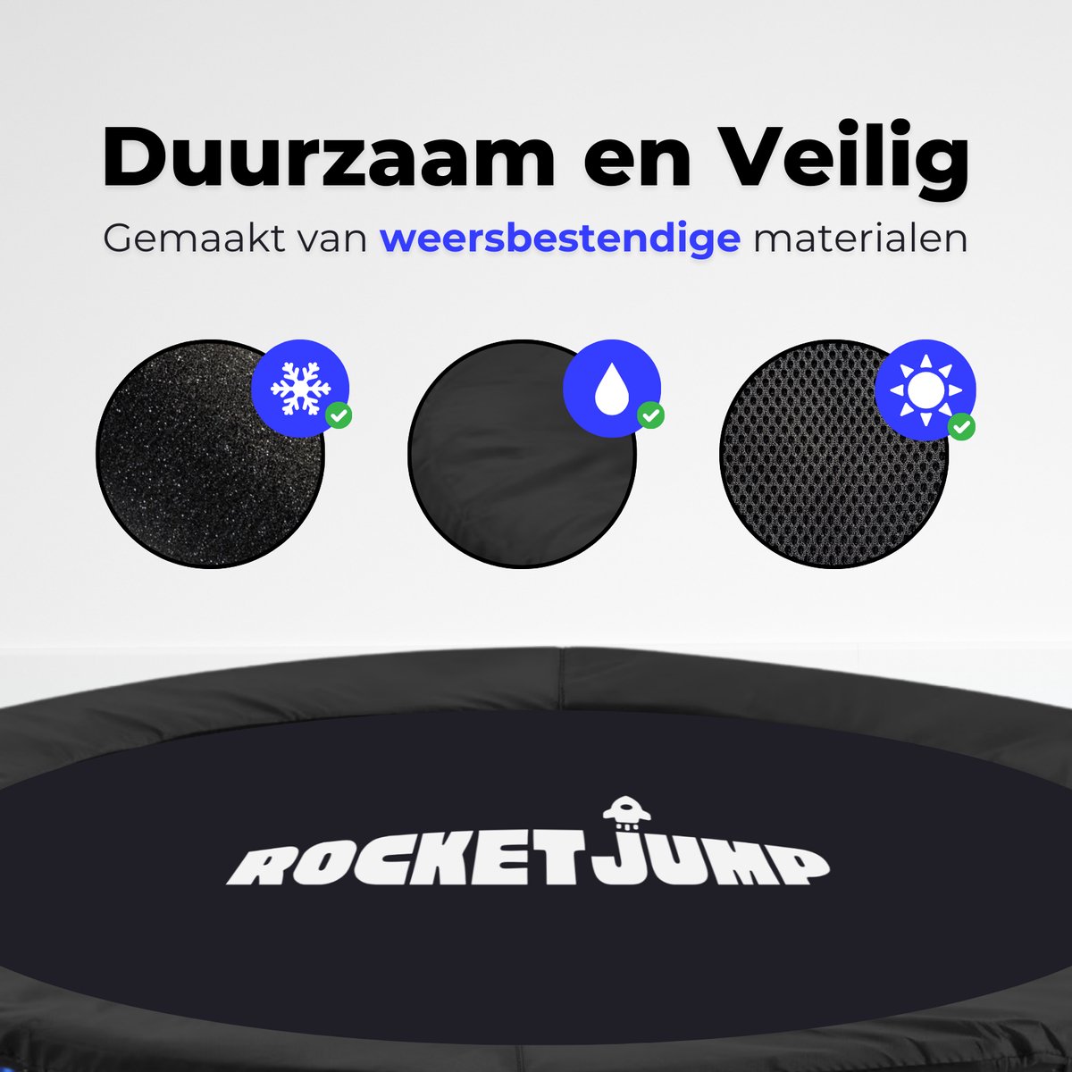- Biedt extra stabiliteit door stevige pootjes die de trampoline op zijn plek houden.