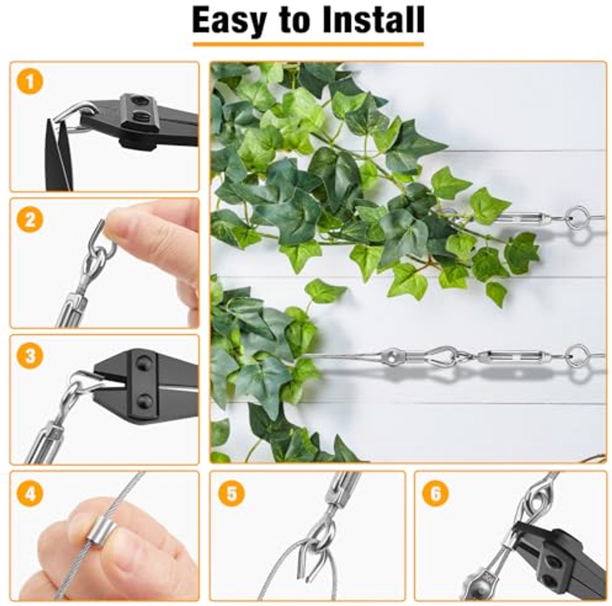 • Ondersteun klimplanten veilig dankzij roestvrij staal; ommanteling voorkomt slijtage.