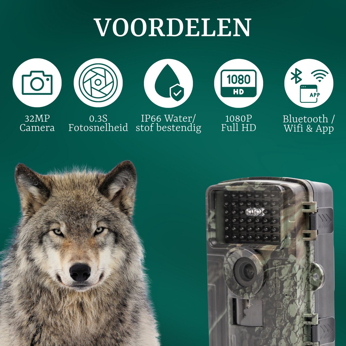 Overzicht:De Rotwan Wildcamera met WiFi is een gebruiksvriendelijke buitencamera voor Nederlandse natuurliefhebbers die beelden direct op de telefoon willen zien. De camera wordt geleverd met een 32GB SD-kaart en zendt een eigen wifi-signaal met een bereik van ca. 20 meter.